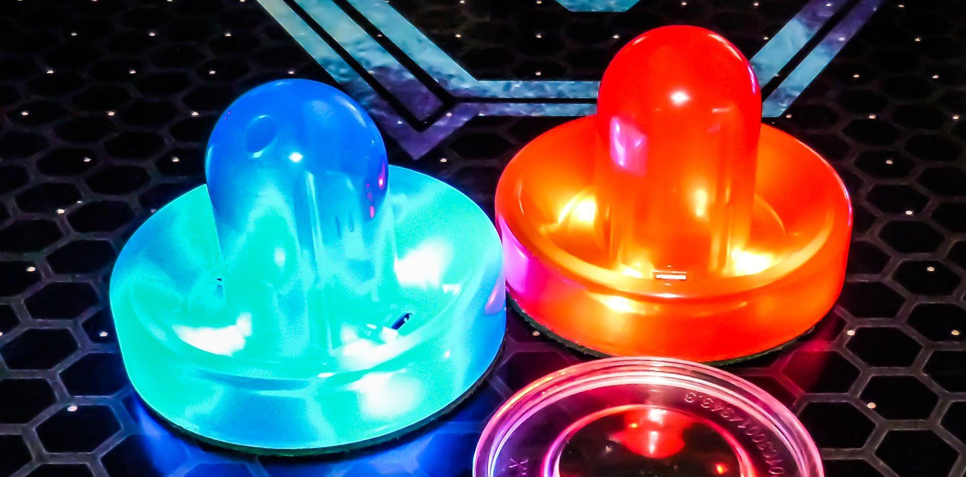 • Leuchtende Pucks & Schieber – für coole Spiele auch im Dunkeln